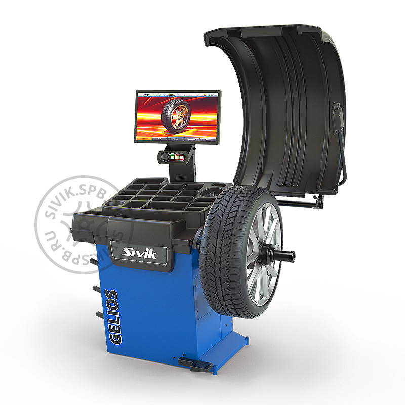 Sivik GELIOS NEW УЗ + ТЛУ + ЭМВ (Гелиос УЗ + ТЛУ + ЭМВ) - обновленная версия (серийное производство - с 01.07.2021 г.) балансировочного станка с автоматическим вводом всех параметров балансируемого колеса, с ЖК-дисплеем высокого разрешения 22″, для балансировки дисков диаметром 10″-28″.